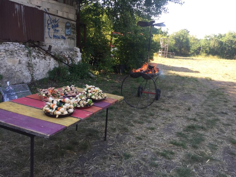 Ce chantier a également été l'occasion de convier des associations partenaires (Acina, L'école enchantiée) à venir cuisiner avec nous des brochettes de viande et végétarienne.