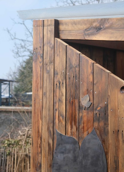 Tout le bois est issu du réemploi, ainsi que les plaques de couverture et le dibond miroir. Seule la quincaillerie est achetée.