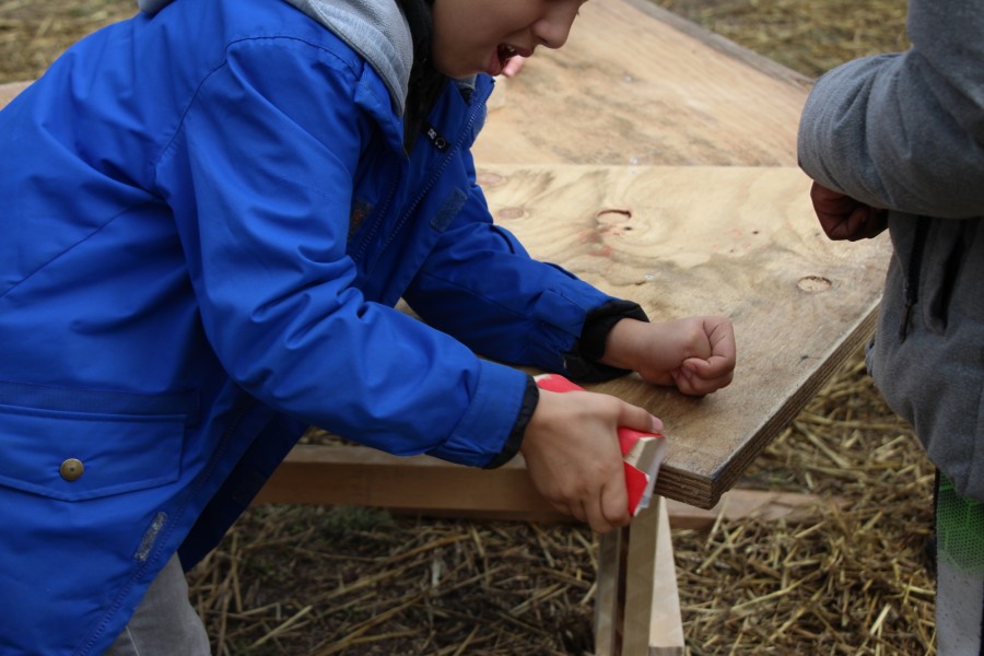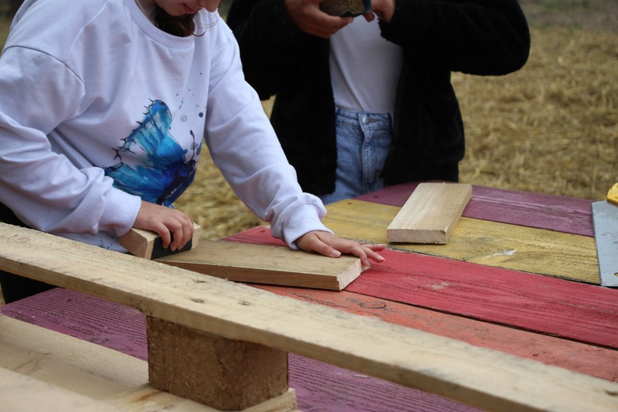 A partir des matériaux de récupération disponibles (trouvés à l’école et sur la parcelle de la Prairie), - des vieux pneus, des palettes et des planches de contreplaqué -, les élèves et leurs professeurs ont travaillé sur des dessins et des maquettes.