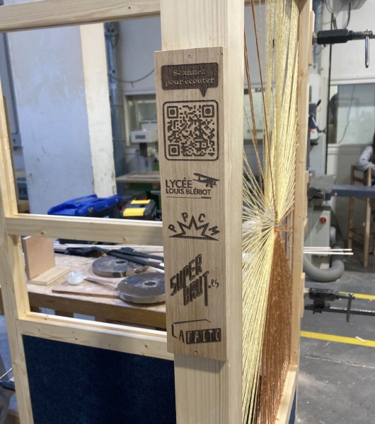 Le bois est issu des chutes de l'atelier du lycée, et les textiles utilisés sont issus du réemploi : cela a aussi été l’occasion d’initier les lycéen·nes à cette pratique.