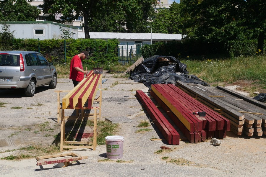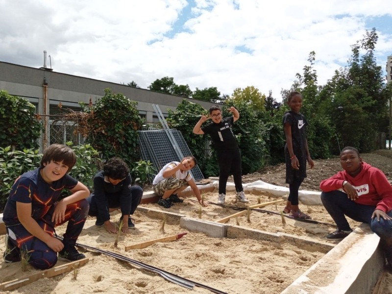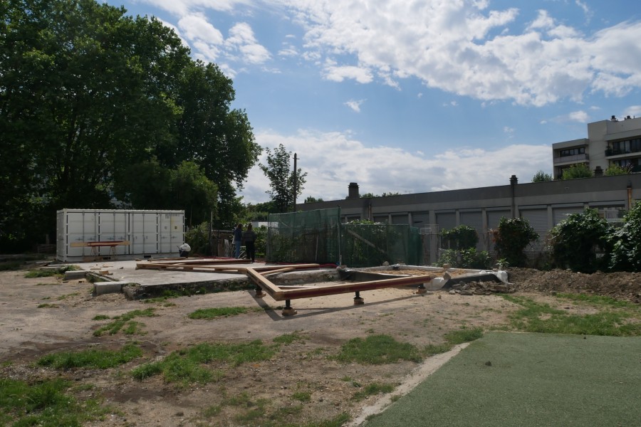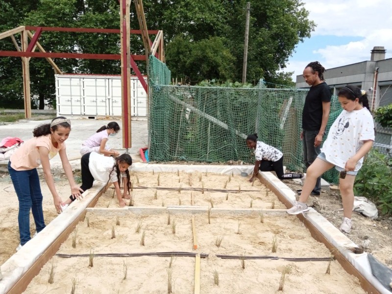 En juin 2021, nous avons organisé la mise en place d’un chantier participatif, qui a mobilisé des bénévoles de l’association, trois jeunes en partenariat avec la mission locale de Montreuil, et des élèves d’une classe de CM1 de l’école primaire Joliot Curie. Aline s'est chargé de la mise en place de ces différents partenariats, et a coordonné les repas du midi en apportant la cuisine mobile de Récolte Urbaine (voir projet Cuisine Mobile) sur le chantier.