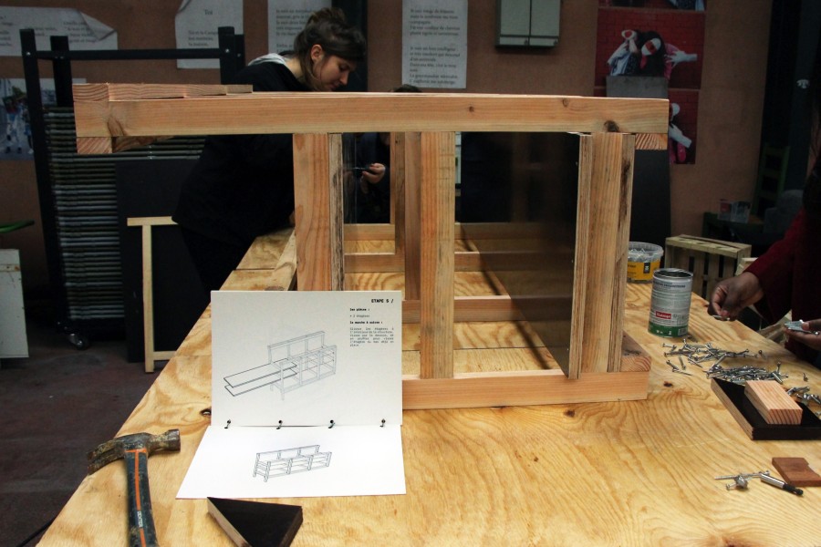 Entre 2019 et 2020, La Facto et l’atelier 15-17 ont conçu et organisé le chantier participatif de construction de mobilier pour la buvette.