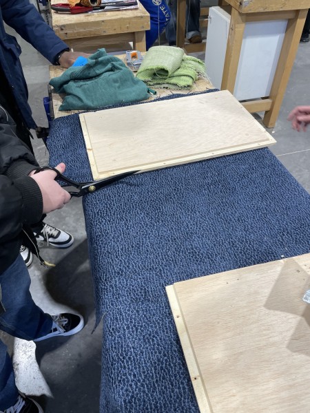 Le bois est issu des chutes de l'atelier du lycée, et les textiles utilisés sont issus du réemploi : cela a aussi été l’occasion d’initier les lycéen·nes à cette pratique.