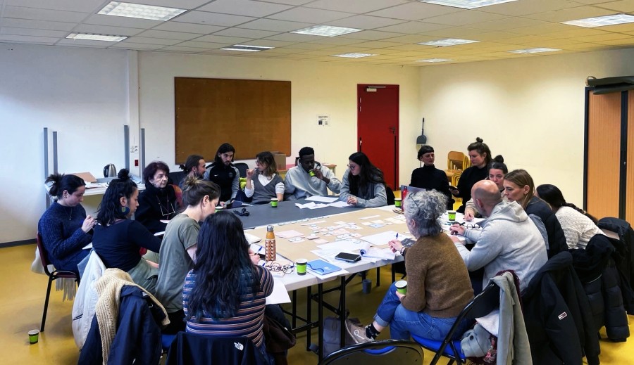 Pour adresser l'enjeu de forte mutualisation des espaces qui va caractériser cette médiathèque, nous avons travaillé à la fois avec des directeur.ices de groupes scolaires et de périscolaire, des médiathécaires et des associations de la ville.