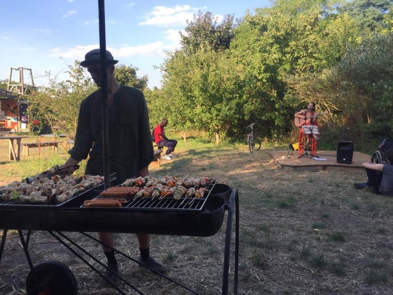 Ce chantier a également été l'occasion de convier des associations partenaires (Acina, L'école enchantiée) à venir cuisiner avec nous des brochettes de viande et végétarienne.