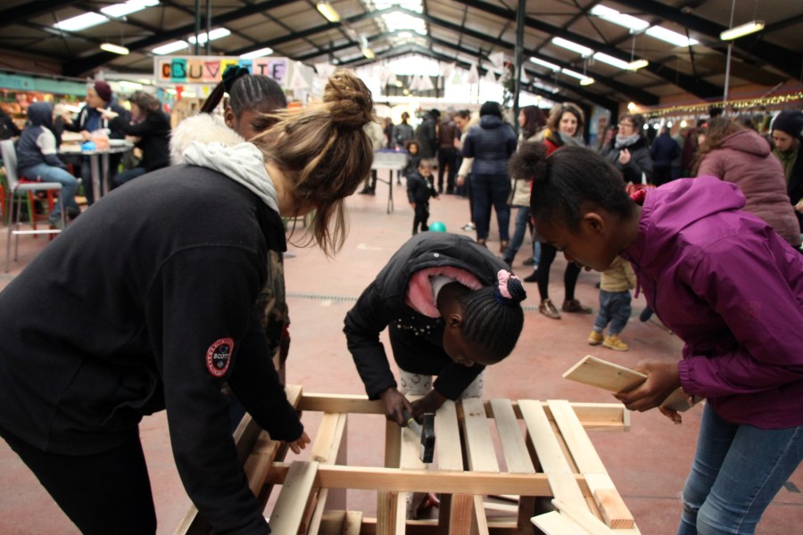 Entre 2019 et 2020, La Facto et l’atelier 15-17 ont conçu et organisé le chantier participatif de construction de mobilier pour la buvette.